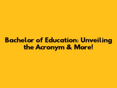 Bachelor Of Education: Unveiling The Acronym & More!
