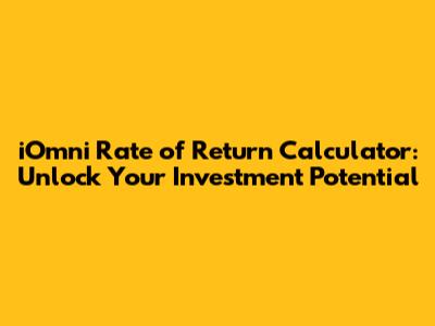Hey guys! Are you looking to dive into the world of iOmni investments and want to figure out just how much bang you're getting for your buck? You've come to the right place. Understanding your iOmni rate of return is super important to make smart investment decisions. It helps you see if your investment is actually growing the way you want it to. This guide will walk you through everything you need to know about calculating your iOmni ROI, why it matters, and how to use our awesome, free calculator to make things easier.