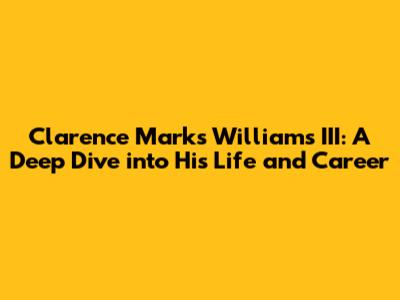 Clarence Marks Williams III: A Deep Dive Into His Life And Career
