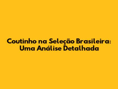 O Futuro de Coutinho na Seleção Brasileira: Expectativas e Perspectivas
