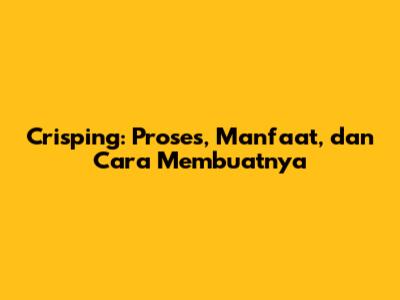 Manfaat dan Aplikasi Teknik Crisping