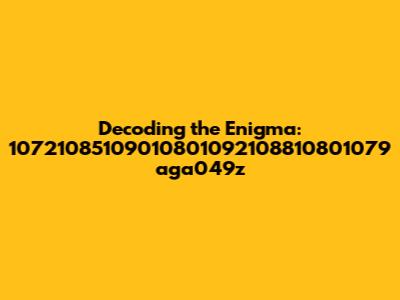 Deciphering '10721085109010801092108810801079 Aga049z': A Mystery?