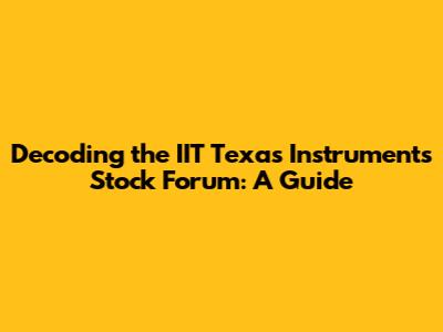 Decoding The IIT Texas Instruments Stock Forum: A Guide