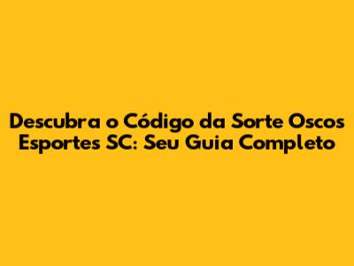 Descubra O Código Da Sorte Oscos Esportes SC
