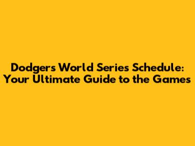 Dodgers World Series Schedule: Game Dates and Times