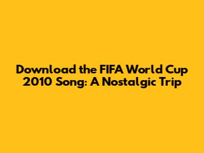 Download The FIFA World Cup 2010 Song: A Nostalgic Trip