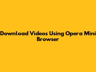 Download Videos Using Opera Mini Browser
