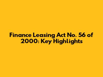 Finance Leasing Act No. 56 Of 2000: Key Highlights