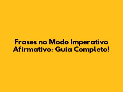 Frases No Modo Imperativo Afirmativo: Guia Completo!