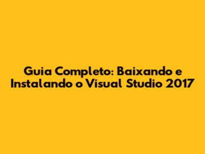 Como Baixar o Visual Studio 2017: Passo a Passo