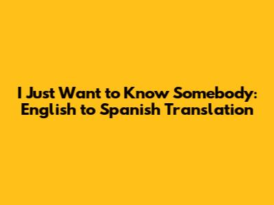 I Just Want To Know Somebody: English To Spanish Translation