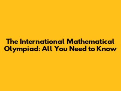 International Mathematical Olympiad: All You Need To Know