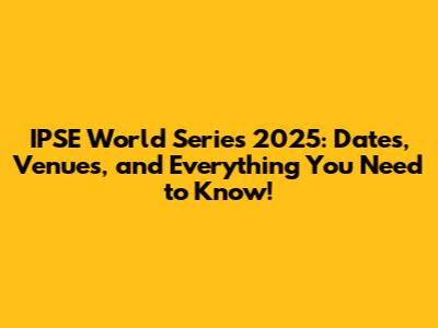 IPSE World Series 2025: Dates, Venues, And Everything You Need To Know!