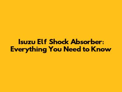 Isuzu Elf Shock Absorber: Everything You Need To Know