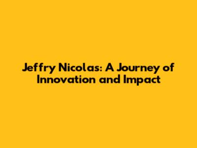 Jeffry Nicolas: A Journey Of Innovation And Impact