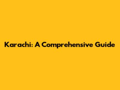 Karachi: A Comprehensive Guide