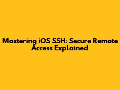 Mastering IOS SSH: Secure Remote Access Explained