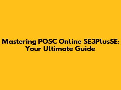Mastering POSC Online SE3PlusSE: Your Ultimate Guide