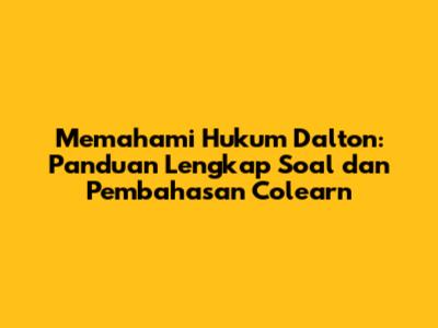 Hukum Dalton adalah konsep penting dalam kimia yang menjelaskan perilaku gas dalam campuran. Dengan memahami konsep dasar, berlatih soal secara teratur, dan memanfaatkan fitur interaktif yang disediakan oleh platform seperti Colearn, kalian dapat menguasai hukum ini dengan mudah. Ingatlah untuk selalu memahami konsep dasar, berlatih soal, dan mencari bantuan jika diperlukan. Selamat belajar!