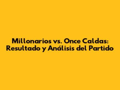 Hey guys! Let's dive into the details of the Millonarios vs. Once Caldas match. We will discuss the final score, key moments, and overall performance of both teams. Understanding the dynamics of this game provides valuable insights for fans and analysts alike. Whether you're a die-hard supporter or just curious about the outcome, this article breaks down everything you need to know.