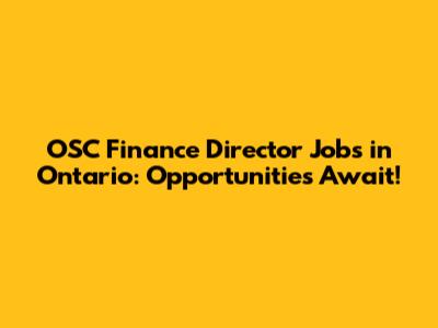 OSC Finance Director Jobs In Ontario: Opportunities Await!
