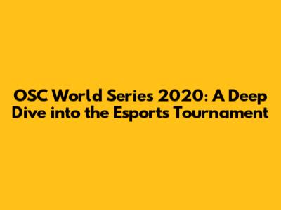 OSC World Series 2020: A Deep Dive Into The Esports Tournament