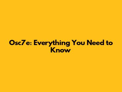 Osc7e: Everything You Need To Know