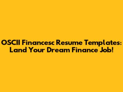 OSCII Financesc Resume Templates: Land Your Dream Finance Job!