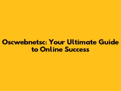 Oscwebnetsc: Your Ultimate Guide To Online Success