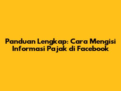 Panduan Lengkap: Cara Mengisi Informasi Pajak Di Facebook