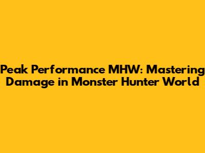 Peak Performance MHW: Maximize Your Damage!