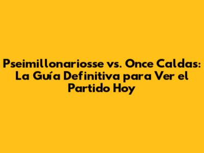 Pseimillonariosse Vs Once Caldas: Dónde Y Cómo Ver El Partido Hoy