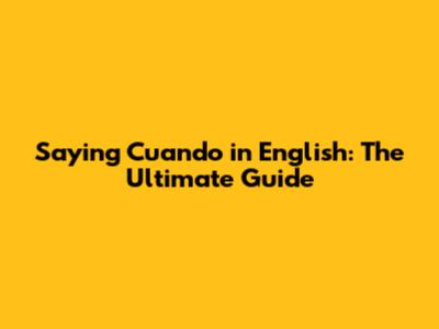 Saying 'Cuando' In English: The Ultimate Guide