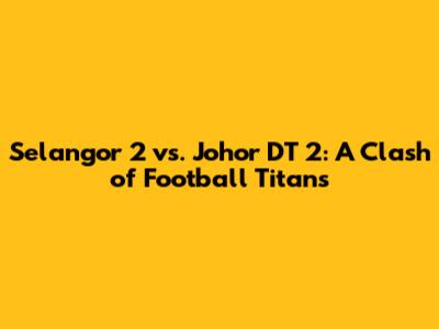 Alright guys, let's dive into the exciting world of football and take a look at the anticipated match-up between Selangor 2 and Johor DT 2! This isn't just any game; it's a clash between two teams with rich histories and passionate fan bases. We'll be breaking down everything from their past performances and key players to potential strategies and what this game means for the overall season. So, buckle up, grab your favorite snacks, and get ready for a deep dive into this thrilling encounter. This analysis aims to give you a comprehensive understanding of what to expect, making you feel like a total expert when you're chatting with your friends about the game!