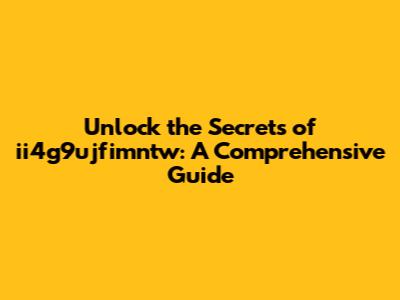 Unlock The Secrets Of Ii4g9ujfimntw: A Comprehensive Guide