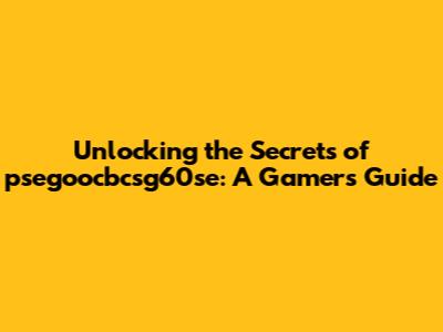 Unlocking The Secrets Of Psegoocbcsg60se: A Gamer's Guide