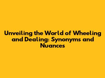 Unlocking The World Of 'Wheeling And Dealing': Synonyms And Nuances