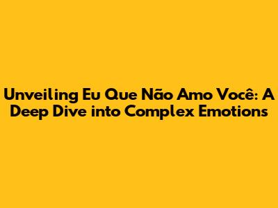 Unveiling 'Eu Que Não Amo Você': A Deep Dive