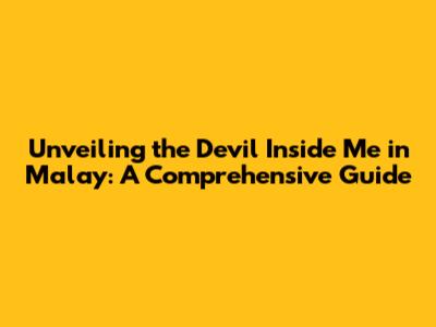 Unveiling The 'Devil Inside Me' In Malay: A Comprehensive Guide