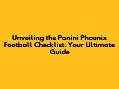 Unveiling The Panini Phoenix Football Checklist: Your Ultimate Guide