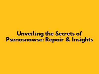 Unveiling The Secrets Of Psenosnowse: Repair & Insights