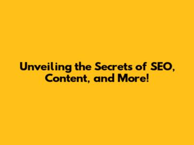 Unveiling The Secrets Of SEO, Content, And More!