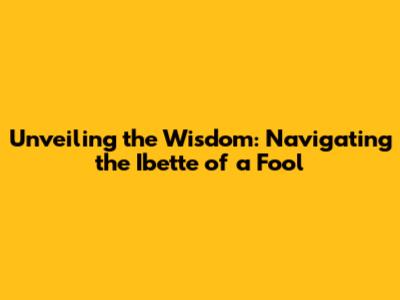 Unveiling The Wisdom: Navigating The Ibette Of A Fool
