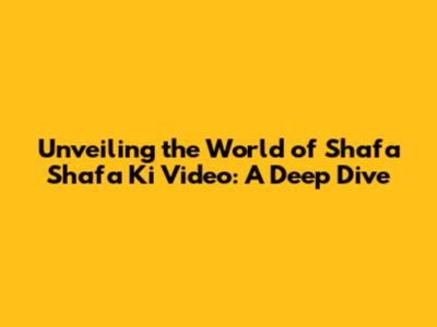 Hey guys! Let's dive into something intriguing: the world of "Shafa Shafa Ki Video." You might be wondering, what is this all about? Well, buckle up, because we're about to embark on an exciting journey to explore this topic in detail. We'll be uncovering its meaning, exploring its nuances, and understanding its place in the vast digital landscape. Whether you're a seasoned internet explorer or just curious, this is your go-to guide to understanding everything about "Shafa Shafa Ki Video."